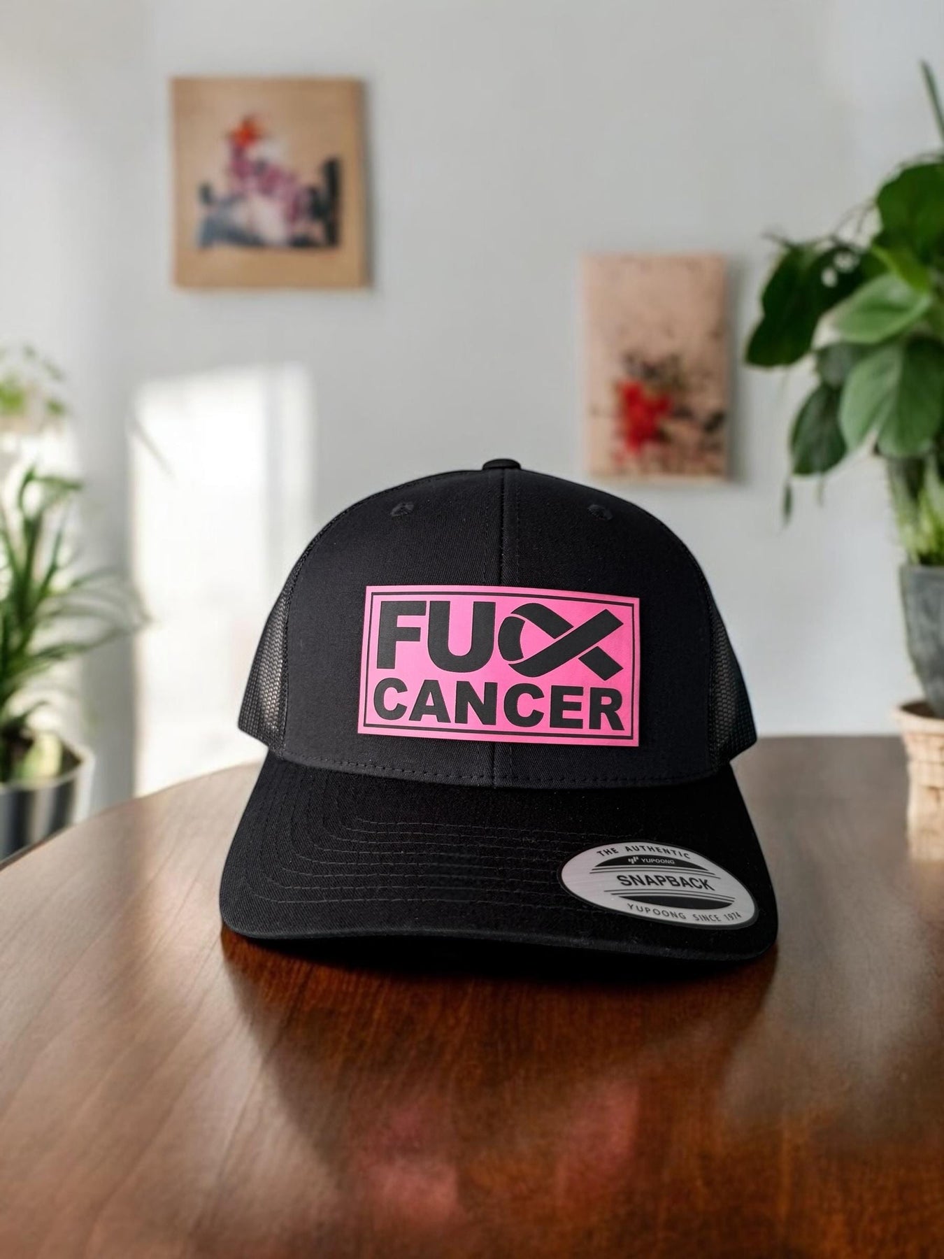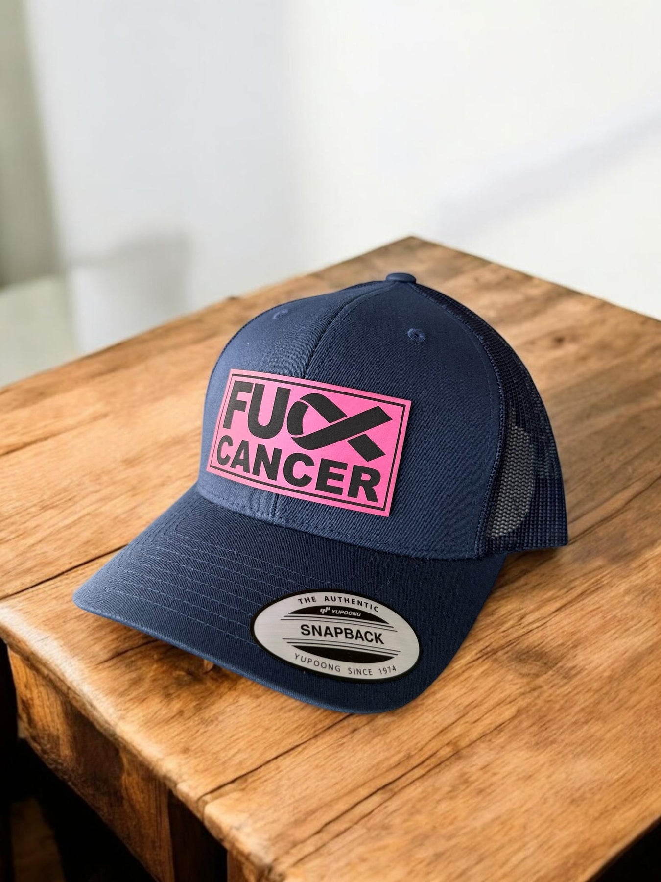 Stand strong and let the world know where you stand with our Breast Cancer Leopard Hat for Women. This tough, no-nonsense, makeup resistant ponytail hat features a powerful pink "Fuck Cancer" patch, with the "C" and "K" creatively replaced by a sideways cancer ribbon. Available in a variety of colors, and in the top-quality Richardson 112, Yupoong 6606 and Evolve Ponytail Trucker Hat styles, this hat is built for comfort, durability, and making a statement.